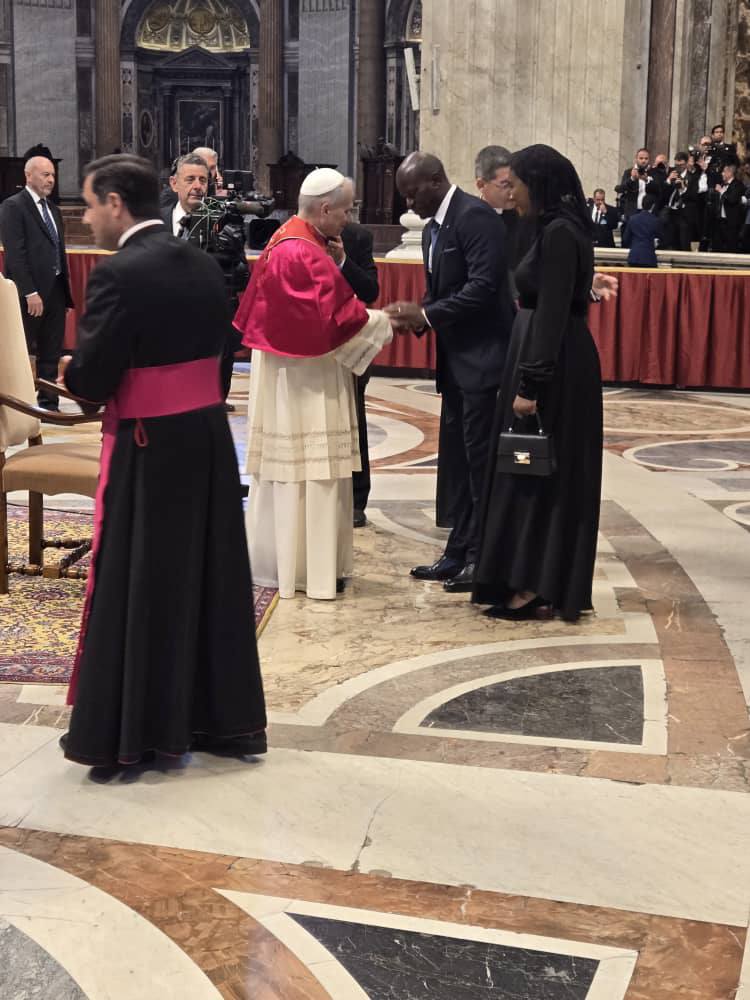 Dimanche 18 mai 2025, le Vatican a été le théâtre d'un événement d'une solennité exceptionnelle avec la célébration de la messe inaugurale du pontificat du Pape Léon XIV. Parmi les nombreux chefs d'État et dignitaires venus du monde entier pour assister à cet événement historique, le président de la République du Gabon, Brice Clotaire Oligui Nguema , et son épouse, la Première dame Zita Oligui Nguema , ont honoré de leur présence l'événement. De nombreuses délégations de dirigeants internationaux étaient également présentes. Celle des États-Unis était dirigée par le vice-président J. D. Vance et le secrétaire d’État Marco Rubio, et celle de l’Ukraine par le président Volodymyr Zelensky. Pour représenter la France, le premier ministre François Bayrou était accompagné des ministres de l’éducation Élisabeth Borne et de la santé et des solidarités Catherine Vautrin.