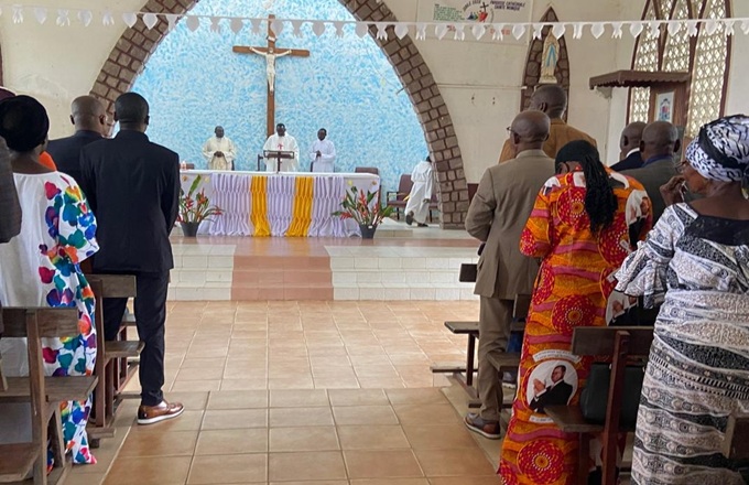 « Chers frères et sœurs, cette célébration, en cette matinée, revêt une lueur particulière. Nous prions pour le repos des âmes des dignes fils de notre peuple qui ont suscité l’intérêt au bien commun, à la solidarité fraternelle, à l’aspiration à l’indépendance, pour une assise politique et économique… La parole de Dieu de ce matin tombe à propos. Si nous analysons ce que dit Saint Jean vient dire », a-t-il poursuivi.