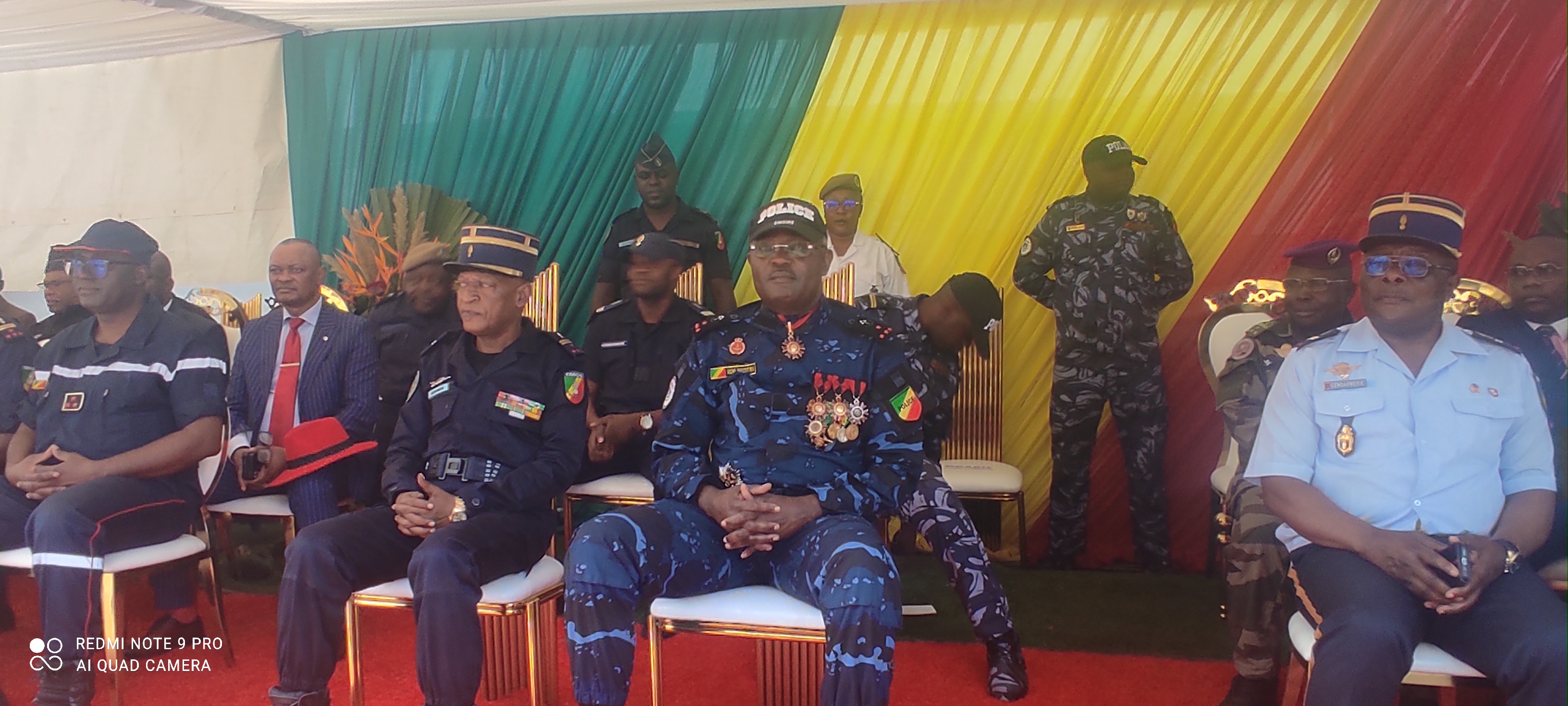 Placée sous le patronage du commissaire colonel-major Michel Innocent Peya, la cérémonie s’est déroulée en présence de hautes personnalités, parmi lesquelles le colonel-major B. Ndongui, directeur général de la stratégie et de la communication de la gendarmerie nationale, le colonel-major Ibita Yombi, inspecteur à la gendarmerie nationale et représentant de l’inspecteur général de la police et de la gendarmerie nationale, ainsi que plusieurs directeurs centraux de la DGFE. Étaient également présents le préfet de la Cuvette-Ouest, Baron Frédéric Bouzock, des députés, invités de marque et les familles des récipiendaires.