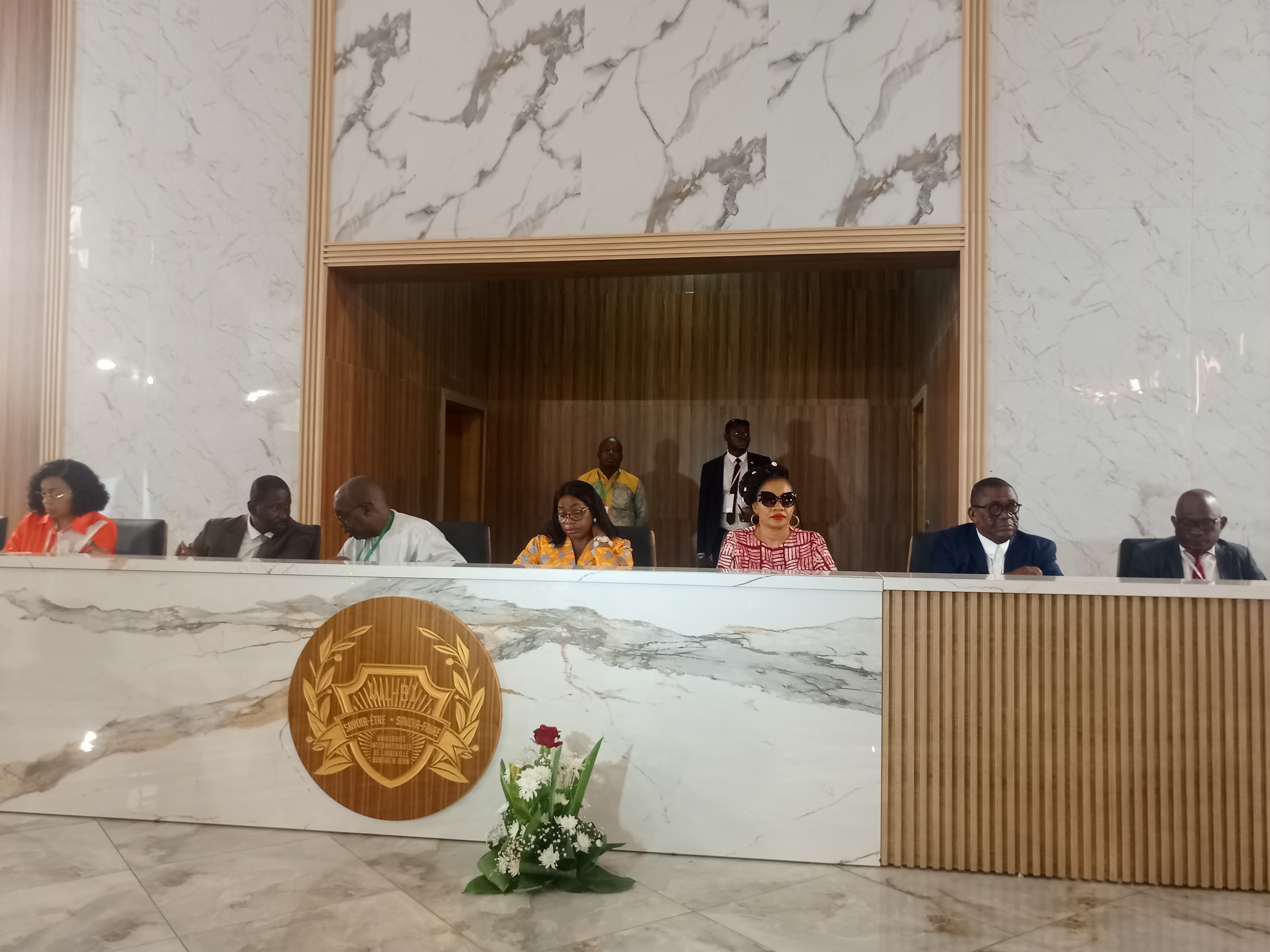 Un fait marquant a caractérisé le dernier jour de la conférence, peu avant la cérémonie de clôture, les participants ont reçu la visite surprise du Docteur Marie-Madeleine Mborantsuo, fondatrice de l’Université Internationale de Libreville Berthe et Jean. Un moment plein de sensation et de portée inoubliable.