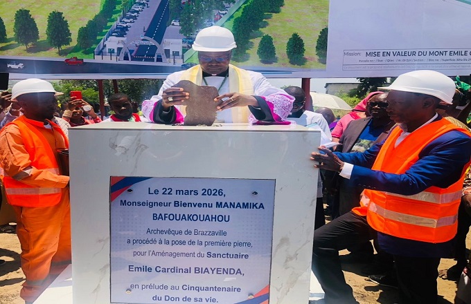 L’archevêque métropolitain de Brazzaville et président de la Conférence épiscopale du Congo, Monseigneur Bienvenu Manamika Bafouakouahou a procédé, le dimanche 22 mars 2026 à la pose de la première pierre d’un sanctuaire en hommage au cardinal Emile Biayenda. Cette festivité marque ainsi le lancement de l’année jubilaire, qui sera célébrée en 2027 prochain, des cinquante (50) ans de l’assassinat du prélat, le 18 mars 1977.