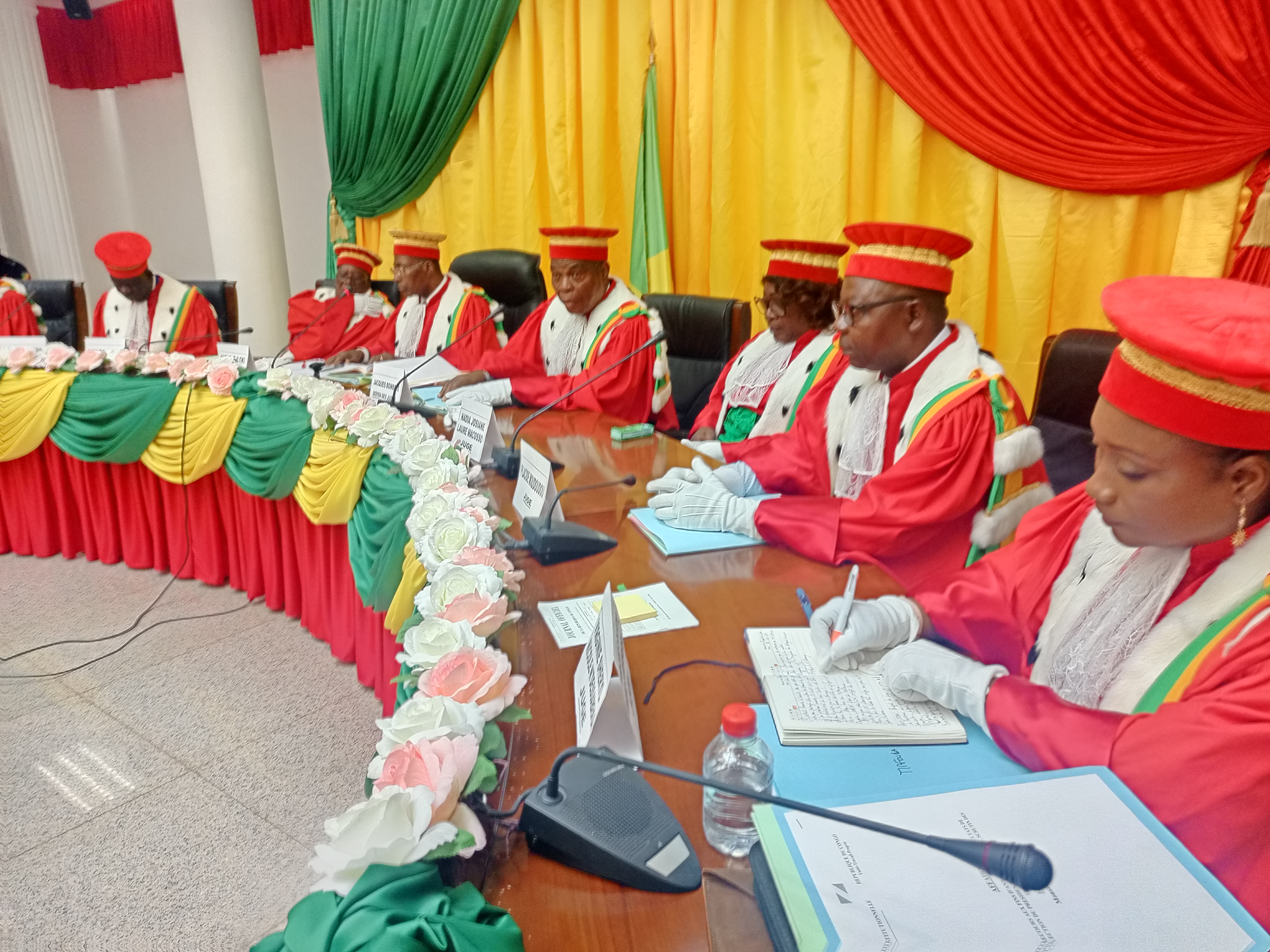 La Cour constitutionnelle réunie, le 28 mars 2026 à son siège de Brazzaville pour statuer sur le recours en annulation des résultats de l’élection du Président de la République, scrutin des 12 et 15 mars 2026, introduit par Monsieur Uphrem Dave Mafoula, candidat à ladite élection contre le candidat Denis Sassou-N’Guesso. Le candidat Denis Sassou-N’Guesso, dont les résultats sont contestés par son challenger Dave Mafoula (assurant lui-même sa défense) a été représenté par les conseils de maître Emmanuel Oko et de son confrère et collègue maître Yvon Eric Ibouanga, tous deux, avocats au barreau de Brazzaville. Aussi, pour examiner, aux fins de proclamation des résultats définitifs, les résultats provisoires de la même élection transmis suivant lettre n° 039/CNEI/CAB-PR du 20 mars 2026 du président de la Commission nationale électorale indépendante, enregistrée le même jour au secrétariat général de la Cour constitutionnelle sous le n°CC-SG 003.