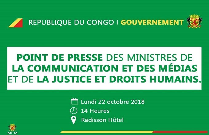 Le ministre de la Communication et des médias, porte-parole du gouvernement Thierry Moungalla et son collègue de la Justice, des droits humains, et de la promotion des peuples ...